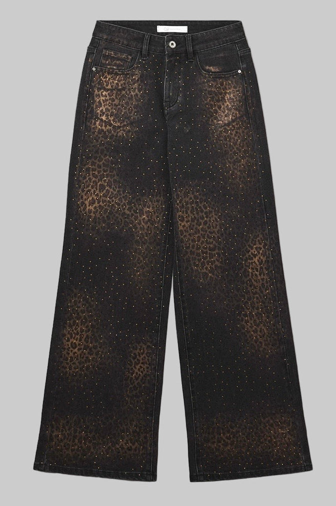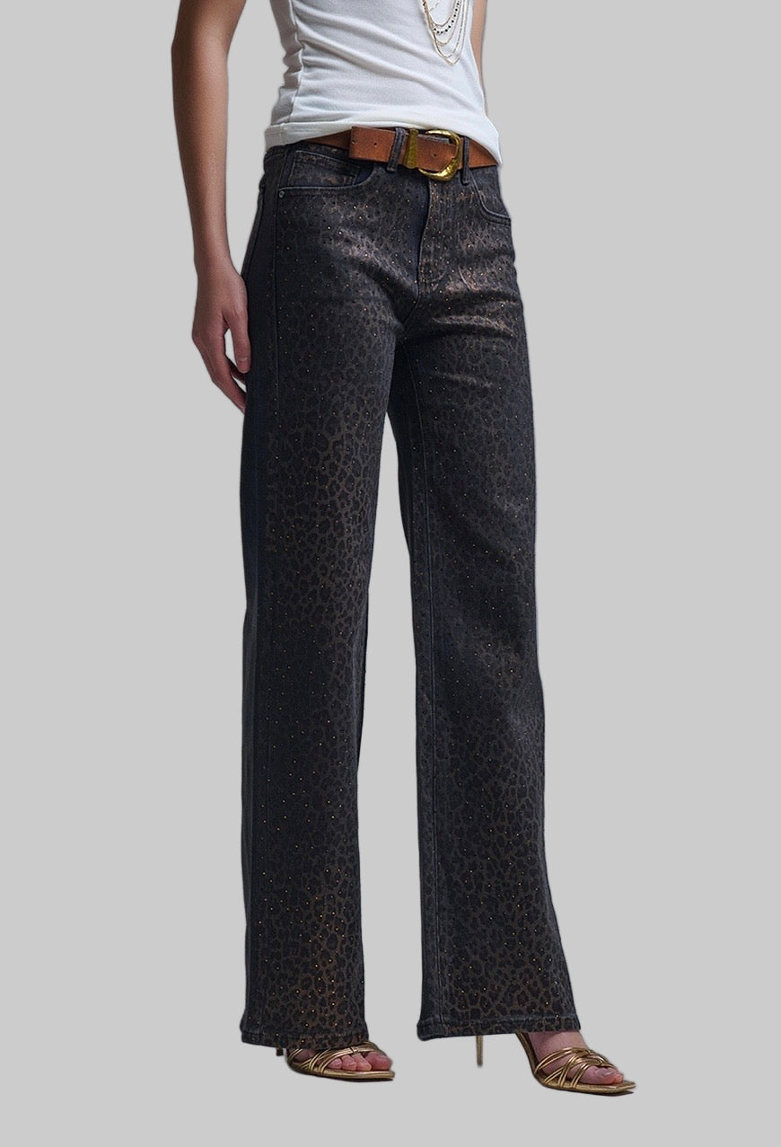 BLACK LEOPARD JEANS STRASS