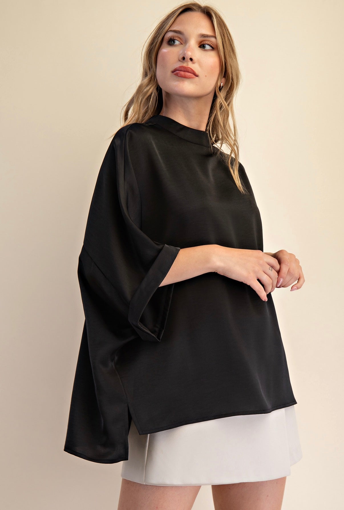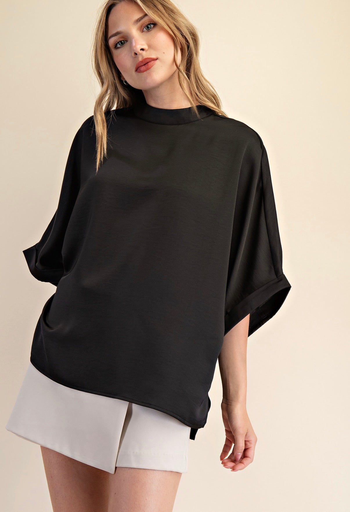 BLACK MOCK NECK OVERSIZE TOP