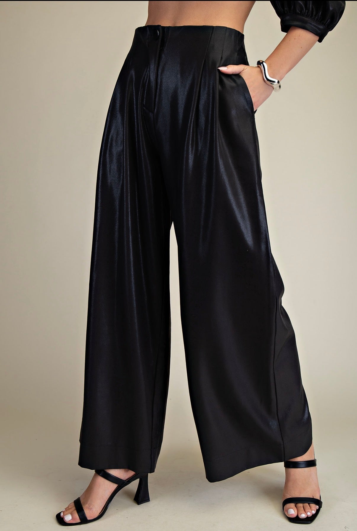BLACK HIGH WAIST WIDE PANTS