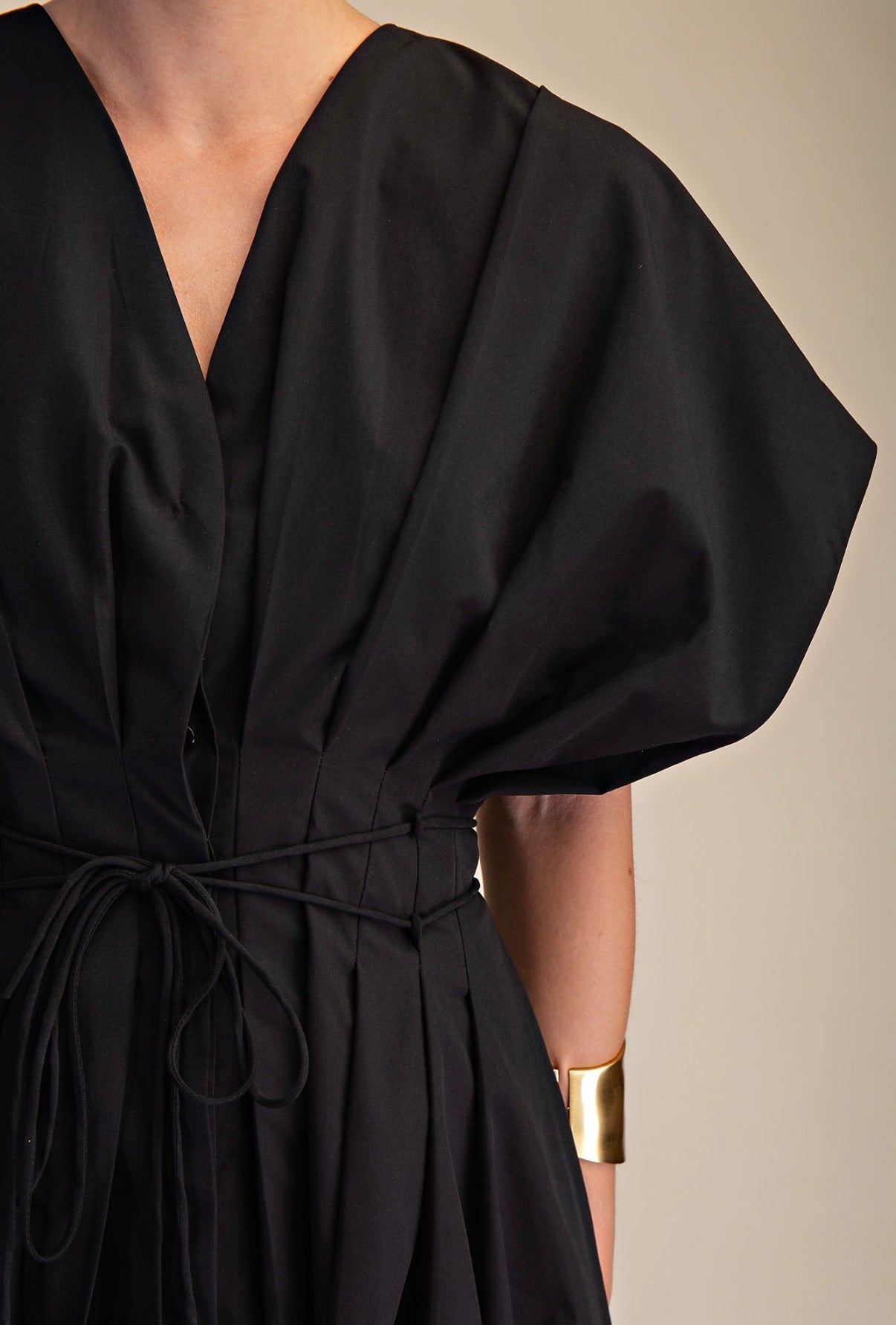 BLACK PLEATED MIDI DRESS