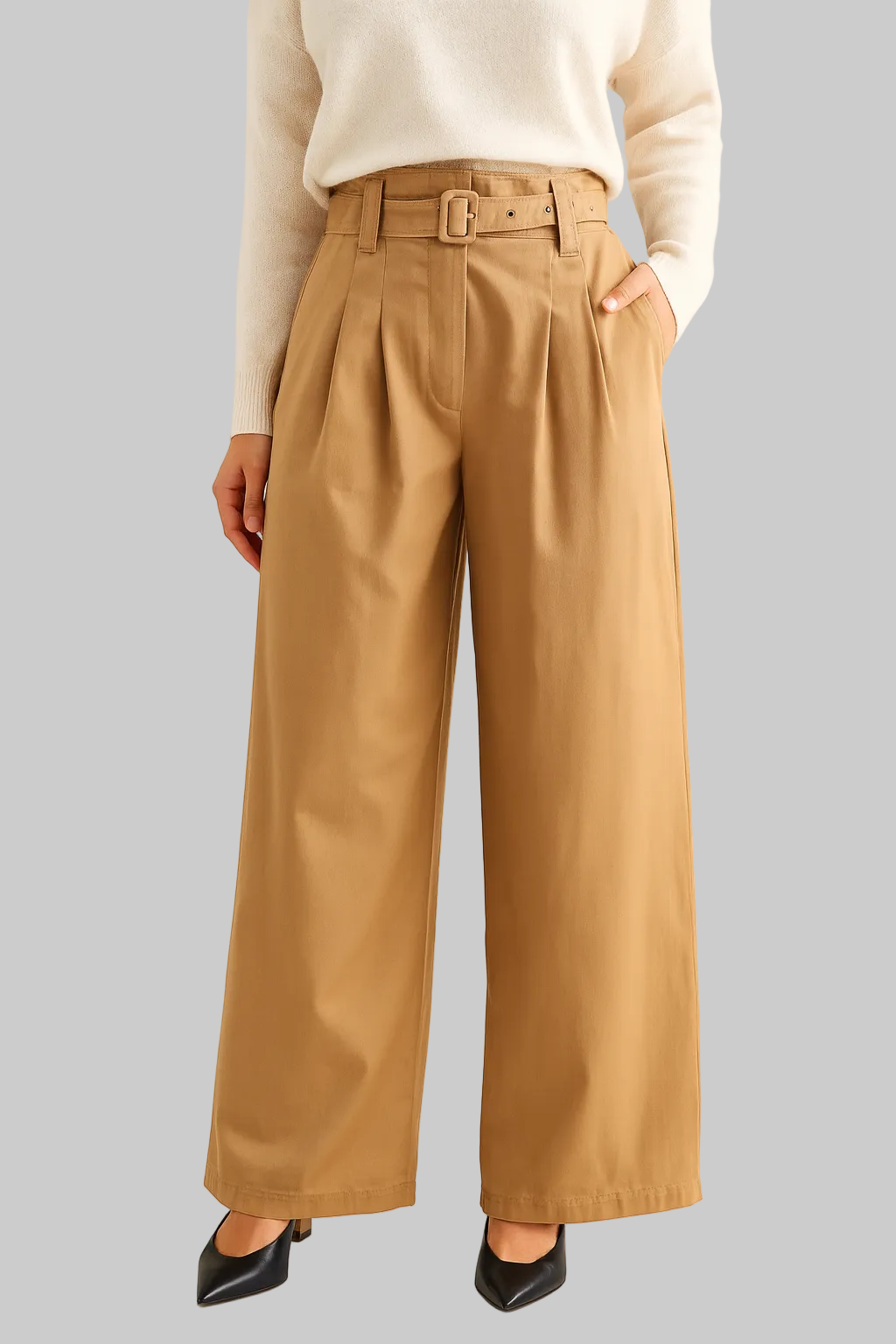BELTED WIDE SUIT PANTS