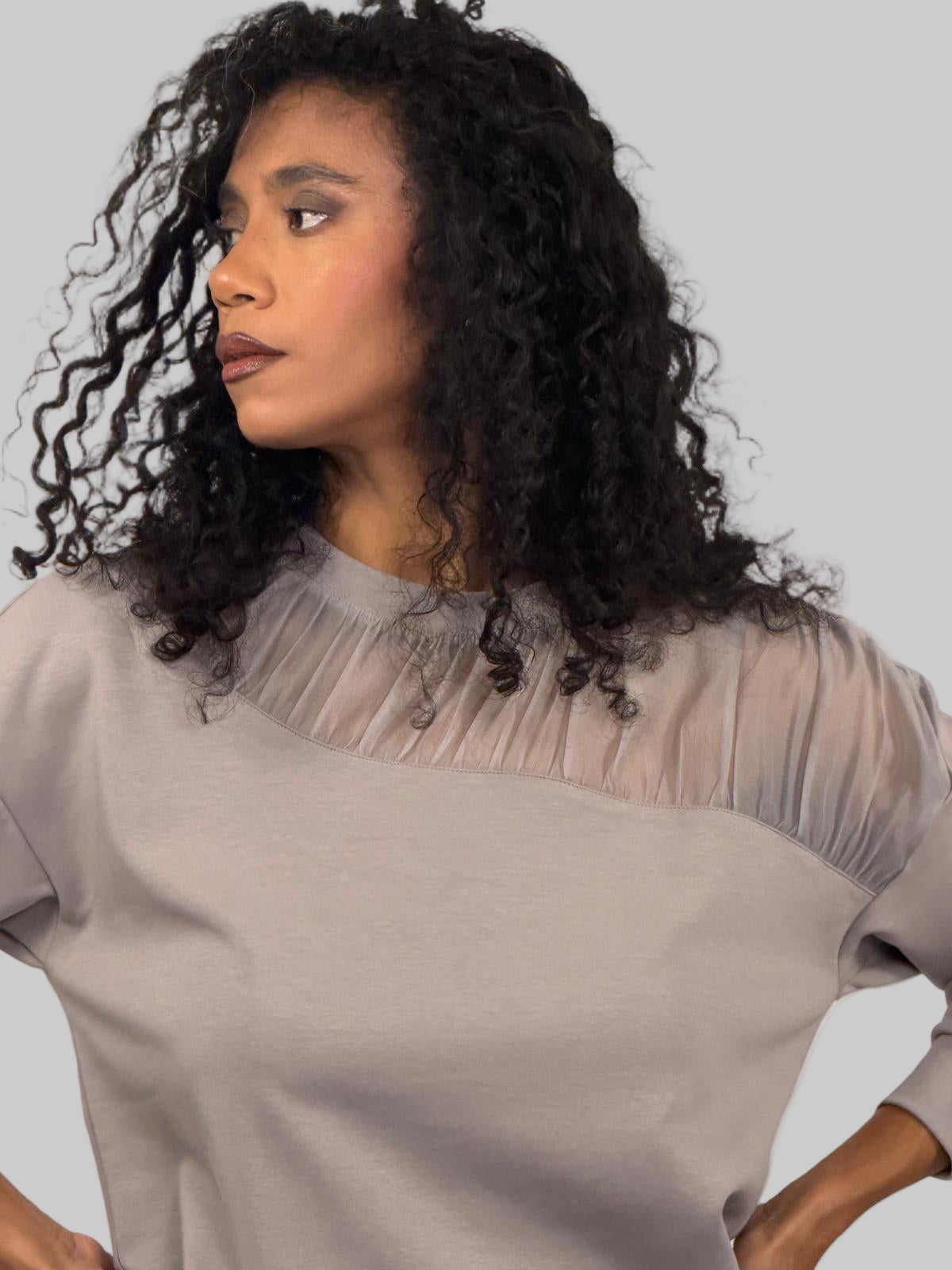 SHEER WHISPER SHOULDER SWEATSHIRT