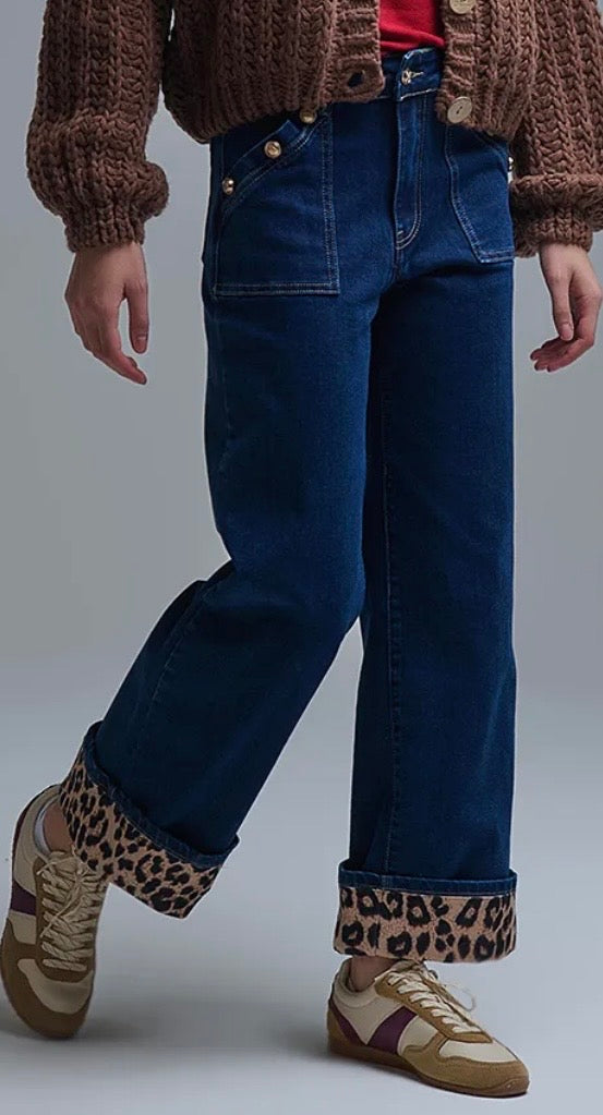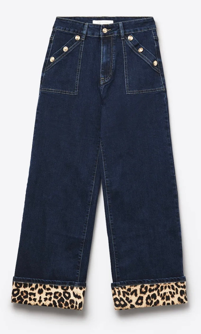 LEOPARD HEM MARINE JEANS